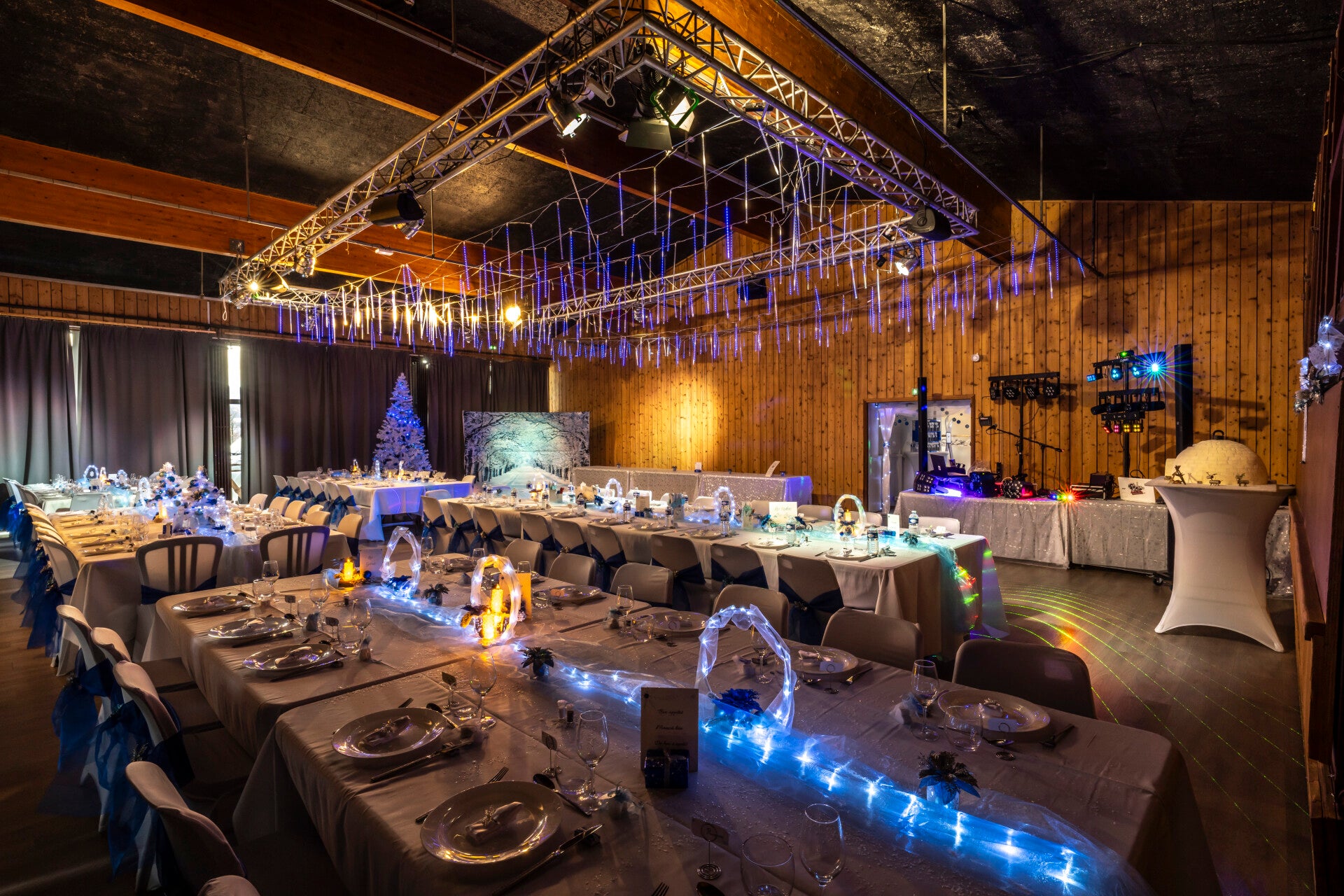 Nous avons participé à un très beau mariage dont Atelier Écodesign avait assuré la décoration. Deux salles avec des mises en scènes qui collaient parfaitement à la personnalité des mariés. Bravo en particulier pour la surprise de découvrir ce plafond de glace lumineux, ou ces mécanismes cachés dans les petits chalets chargés de révéler le dessert 😍